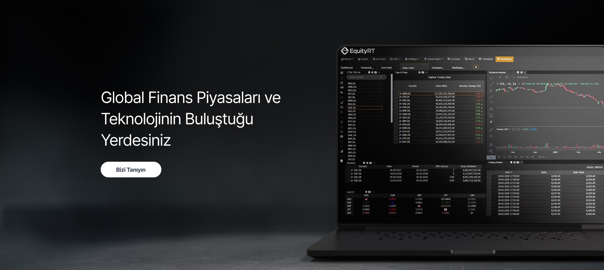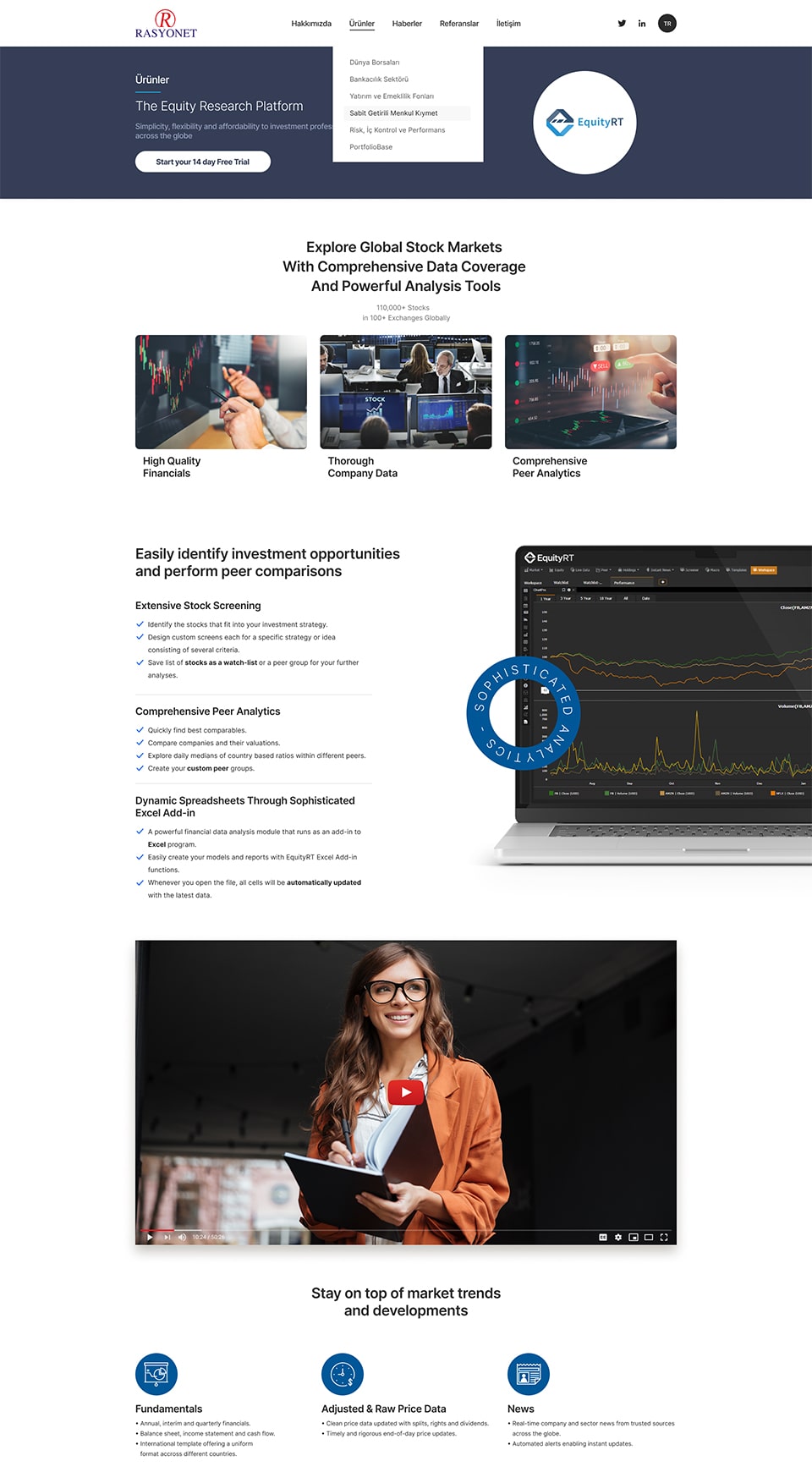We are with you for all your data and application needs for stocks, mutual funds, private pension funds, fixed income securities, company and industry news, money markets and cross rates, macroeconomic data and forecasts, banking and insurance industry. Please contact us to benefit from our Web Services for comprehensive analysis of Borsa Istanbul and global stocks, Macro-Economic analysis, Mutual funds and BES Analysis, Investor Relations, Robo-Consulting, Finance Portals and Mobile applications.