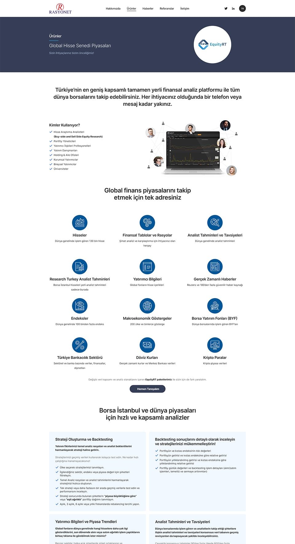 Rasyonet offer value-added analysis platforms for banks, brokerage houses, pension companies, portfolio management companies and real sector finance professionals operating in capital markets.